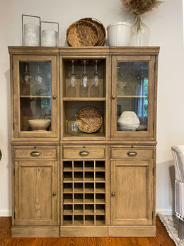 The functionality of this living room was greatly improved by moving the television from the fireplace to it's own wall. The awkward space on the left side of the room, which was cut off by the path of travel, was made cozy by adding a small seating area, oversized mirror to reflect the light from the front windows, and a hutch.